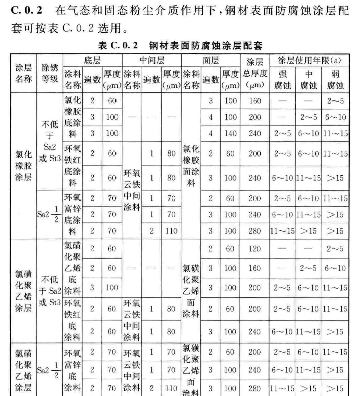 以下技術參數,摘錄自《工業建筑防腐蝕設計標準》GB/T50046-2018